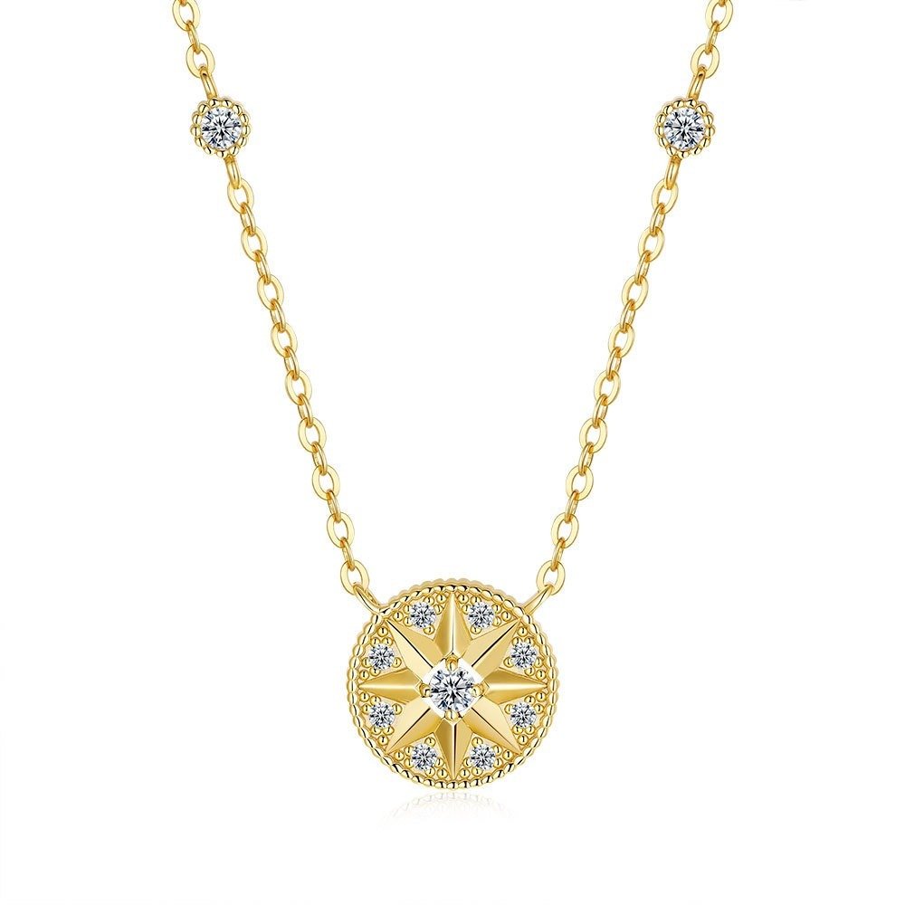 This Hexagram necklace centers a brilliant moissanite, a gemstone born from the stars, set within a precise 24K gold plated motif. Its design merges cosmic inspiration with architectural clarity, creating a piece that is both a personal talisman and a work of modern art.